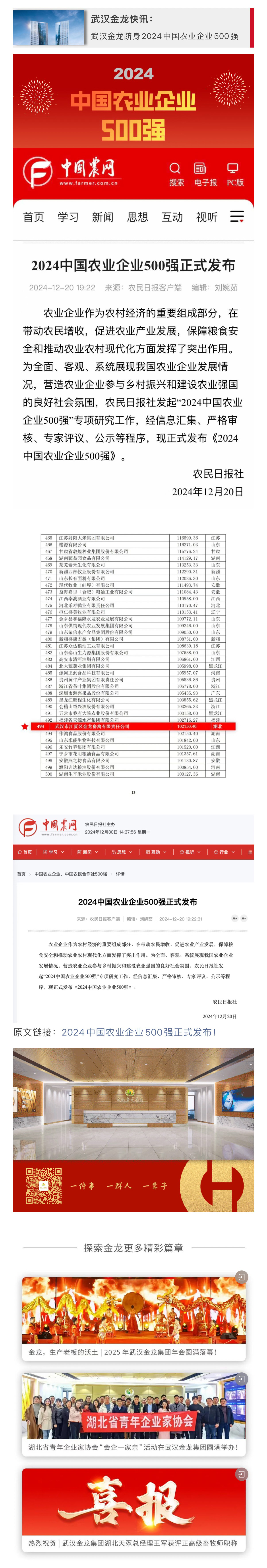 榮耀時(shí)刻!武漢金龍榮登2024中國(guó)農(nóng)業(yè)企業(yè)500強(qiáng)榜單